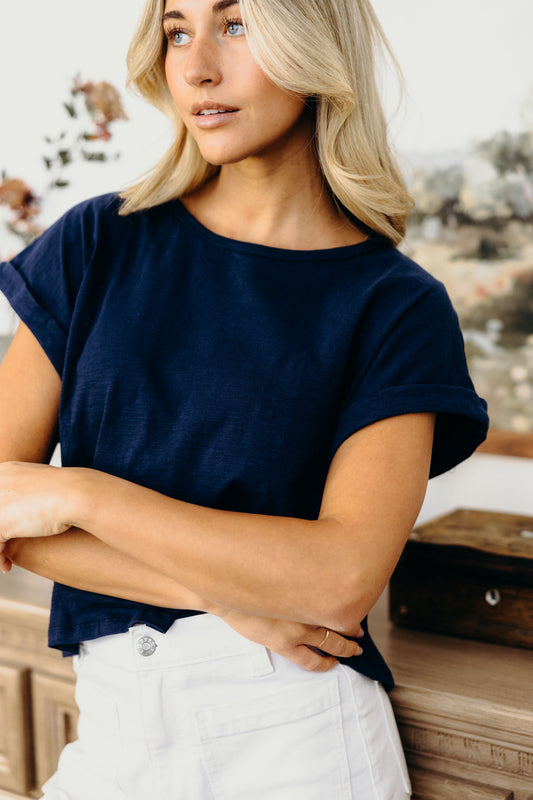 SHORT SLEEVE RIBBED TEE IN IVORY