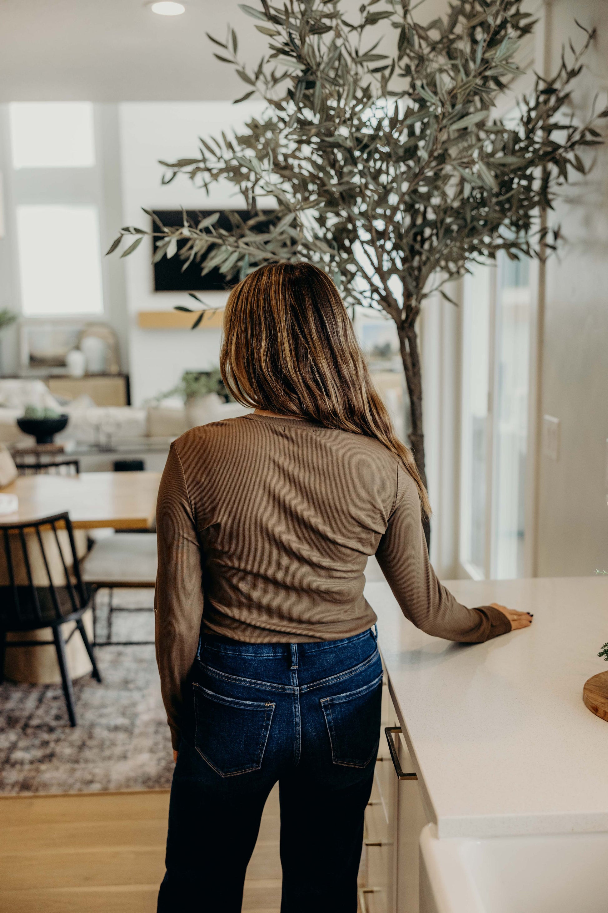 HIGH NECK LONG SLEEVE TEE IN DRIED SAGE